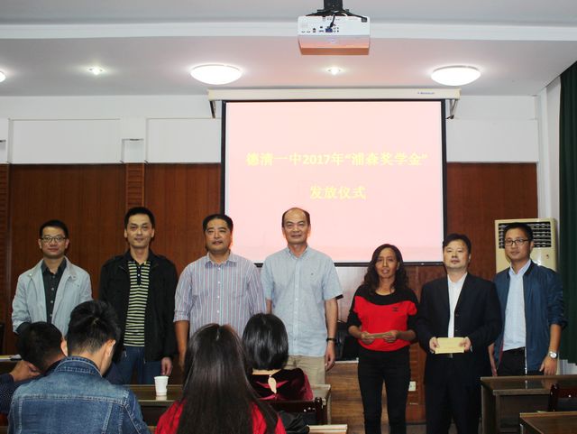 10月11日下午,德清一中在校会议室举行“2017学年浦森教育基金”颁奖仪式。党总支书记、校长姜伟,校党总支副书记李建民,副校长蔡海峰出席了颁奖活动。